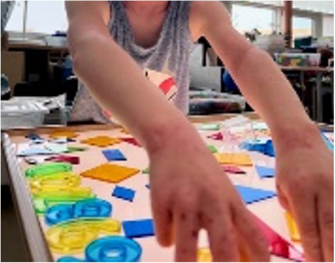 Since the light table is new to our classroom, the students are openly exploring with the light. We have provided them with colour paddles, numbers and letters, pattern shapes, and various objects and paper. Through this exploration process, the students are using vocabulary from previous lessons taught, and having conversations with other students about what they have discovered. They are learning the importance of turn taking as we can not all use it at the same time.
