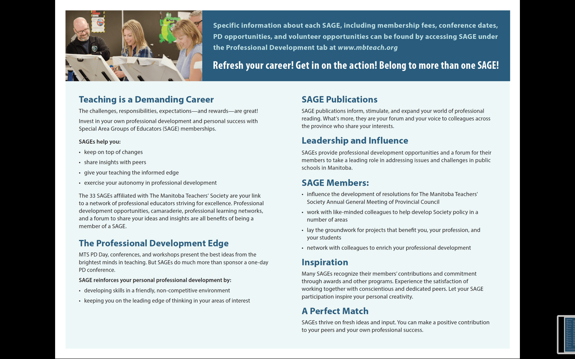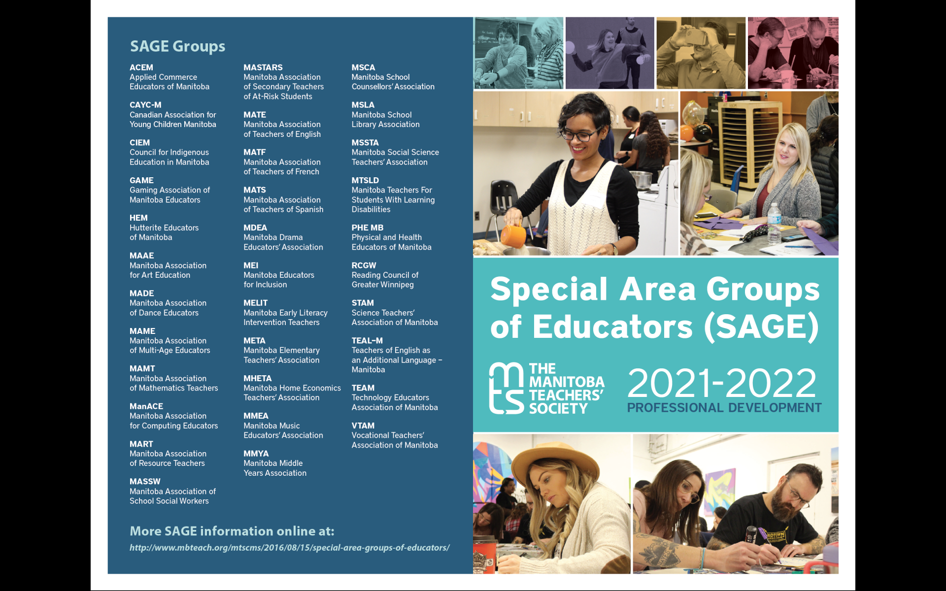 MAME, The Manitoba Association of Multi-age Educators, is one of 33 Special Area Groups of Teachers affiliated with the Manitoba Teachers' Society. To learn more about MAME and how to become a member check out the "About MAME" page in the links above.